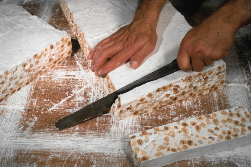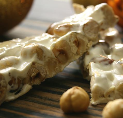 Dalla forma tipicamente rettangolare, più o meno spessa a seconda delle scelte e tipicamente di colore bianco, il Torrone alle nocciole è facilmente riconoscibile: ricoperto da una sottilissima ostia inframmezzata dal suo tenero cuore di Nocciole, il Torrone piemontese può avere una consistenza tenera o dura, ma che rivela già al primo morso l’inconfondibile profumo e sapore del miele e delle nocciole piemontesi. A seconda della zona e dei metodi di produzione, si possono distinguere due differenti tipi di Torrone: il “Torrone Asti” ed il “Torrone d’Alba e delle Langhe”.